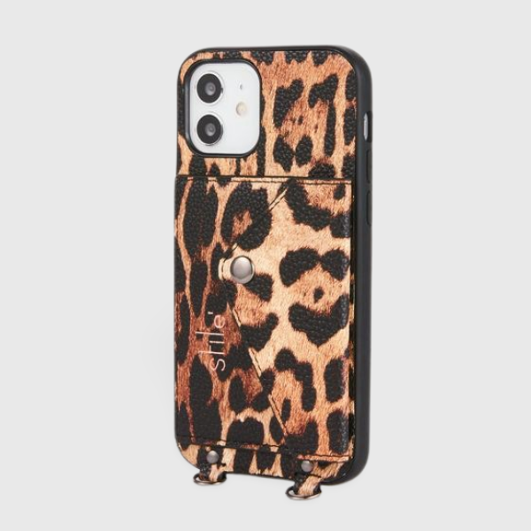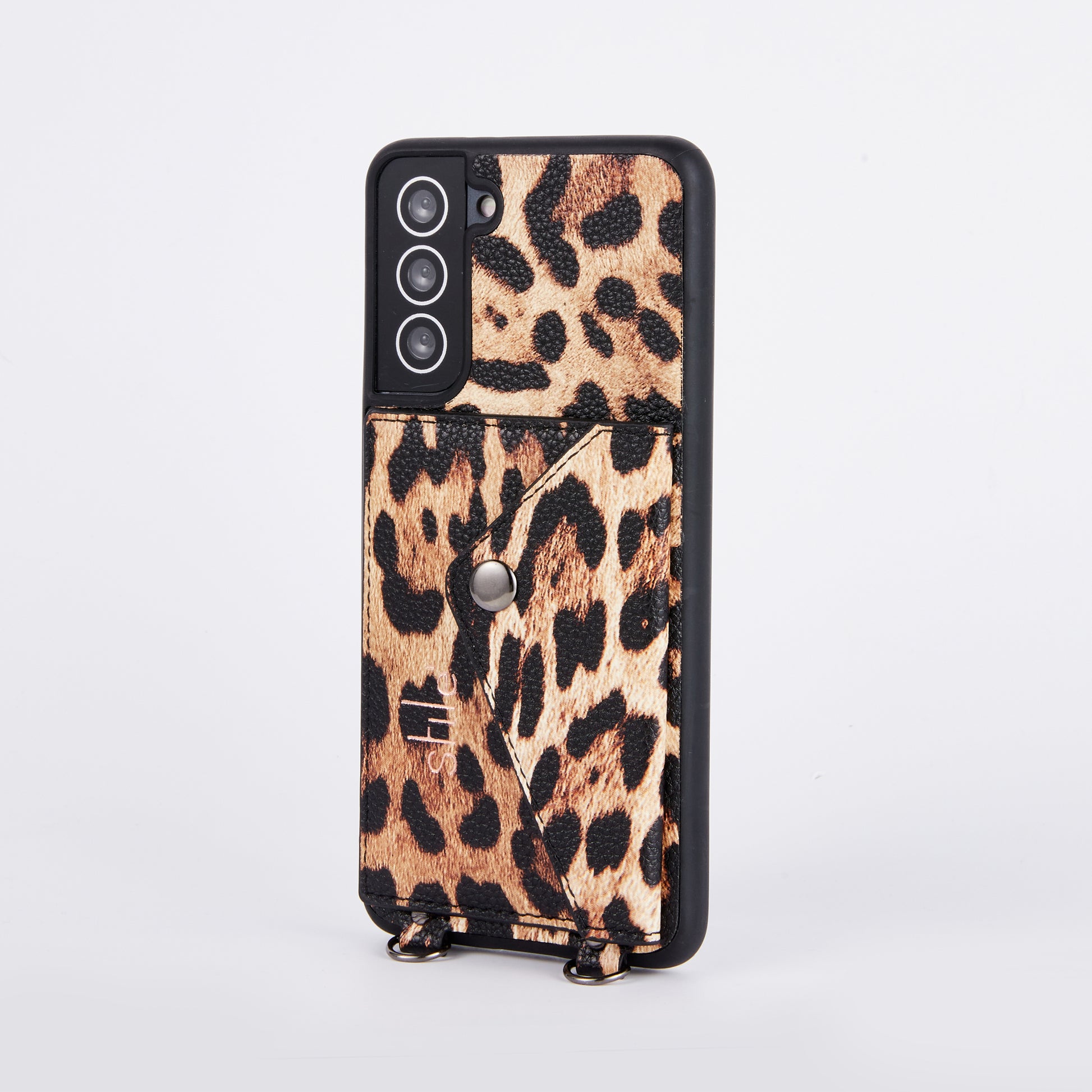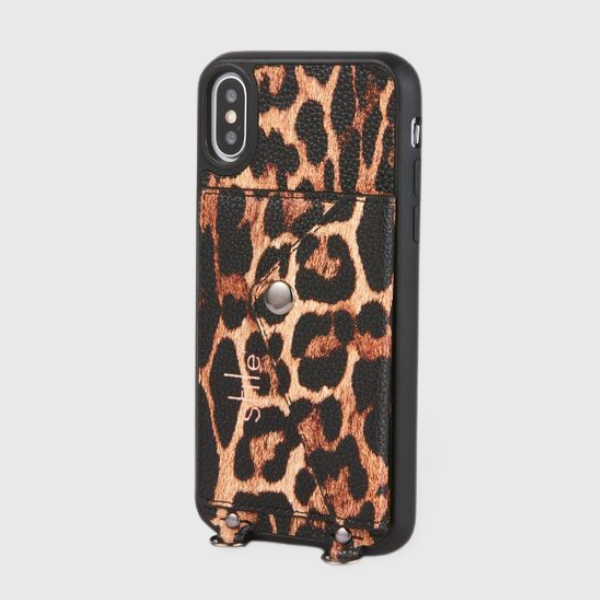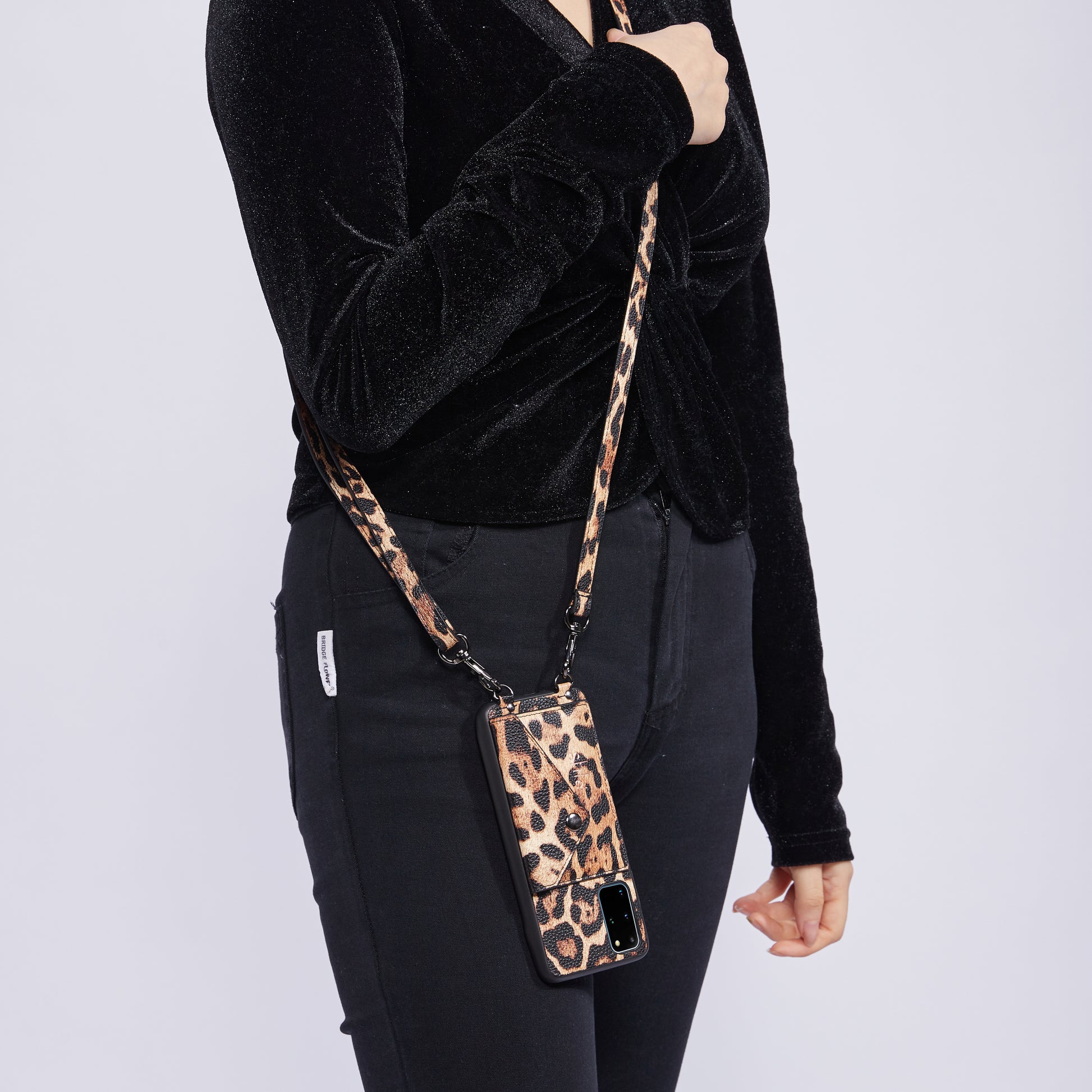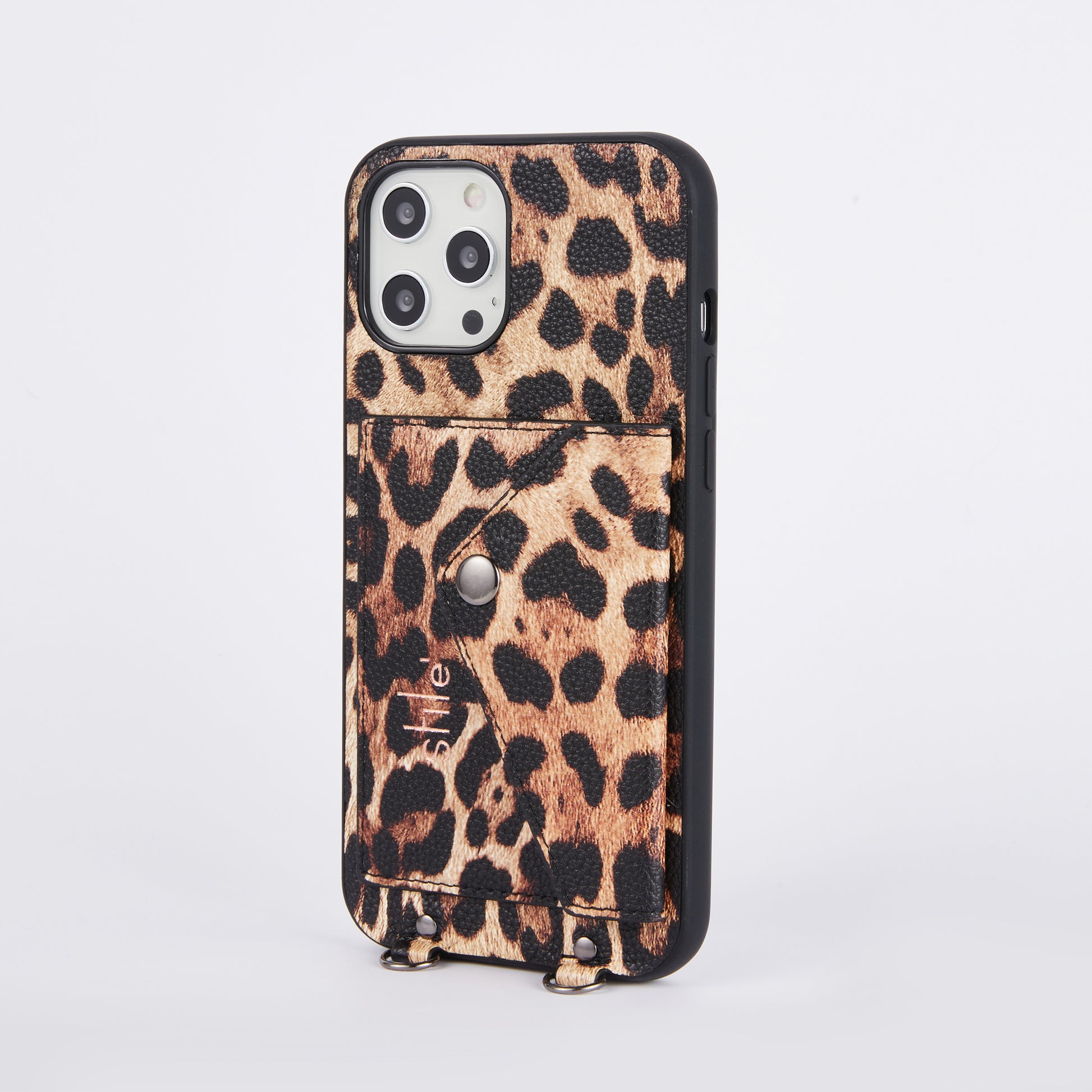 Printed Leopard pattern phone case with crossbody strap, this must have style comes complete with a side-slot snap back wallet for your cards.