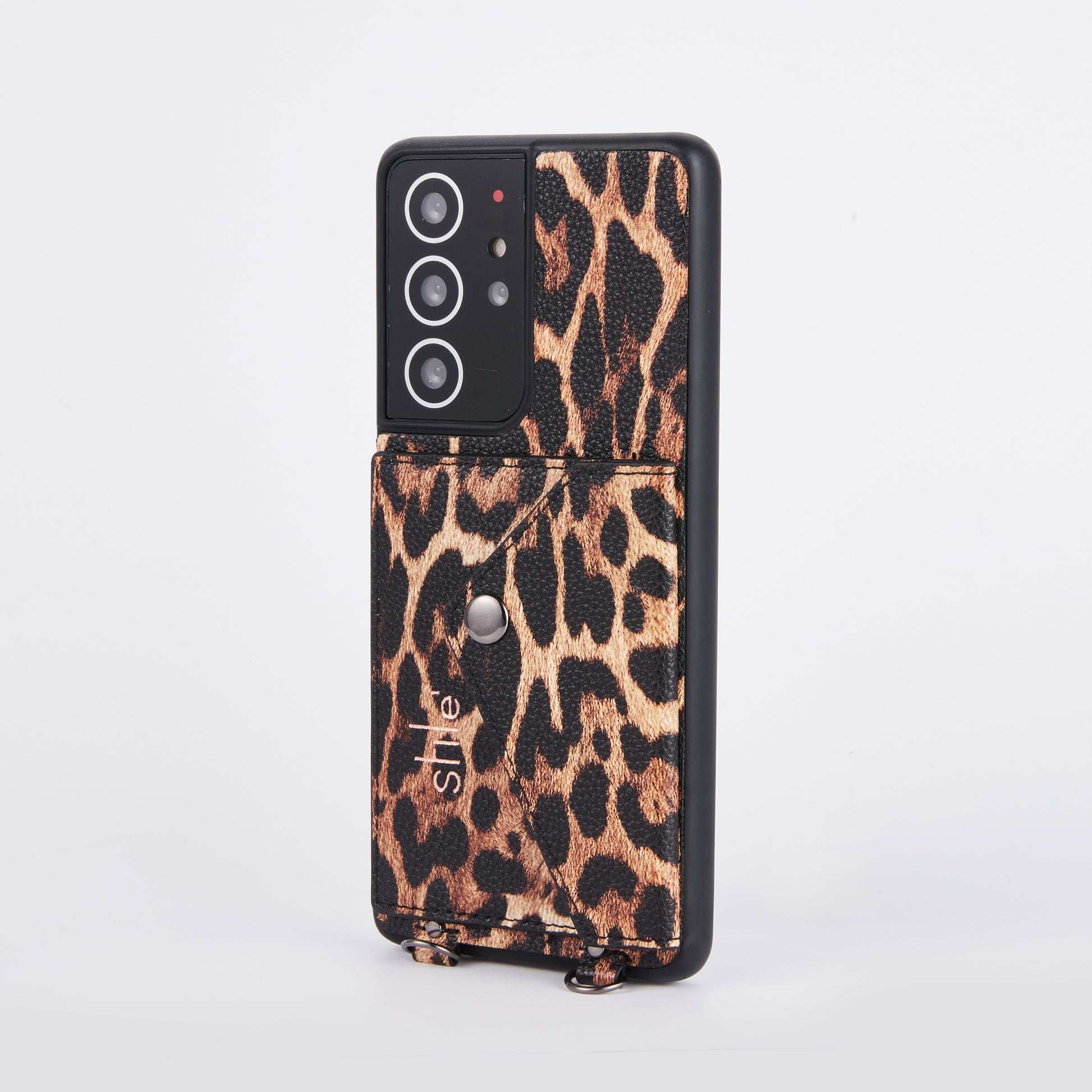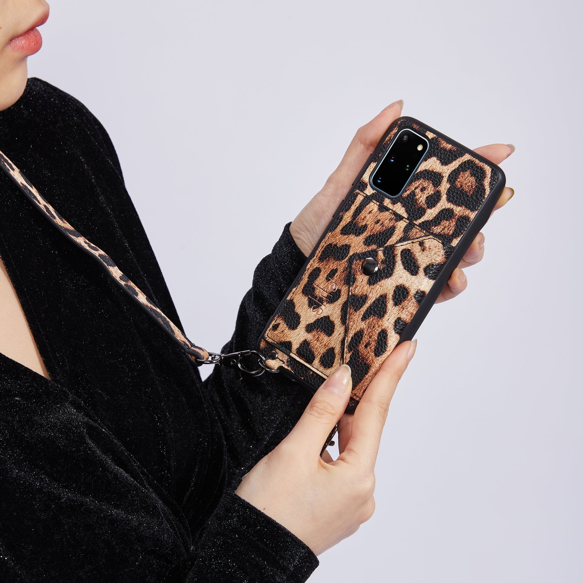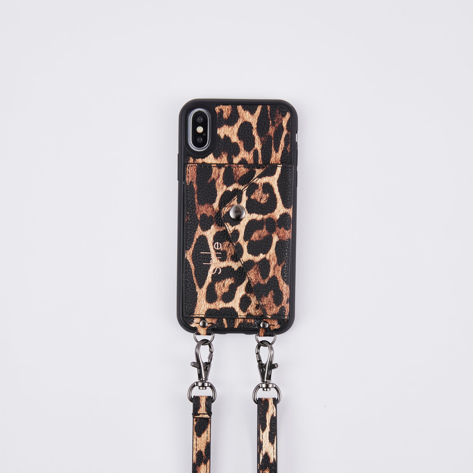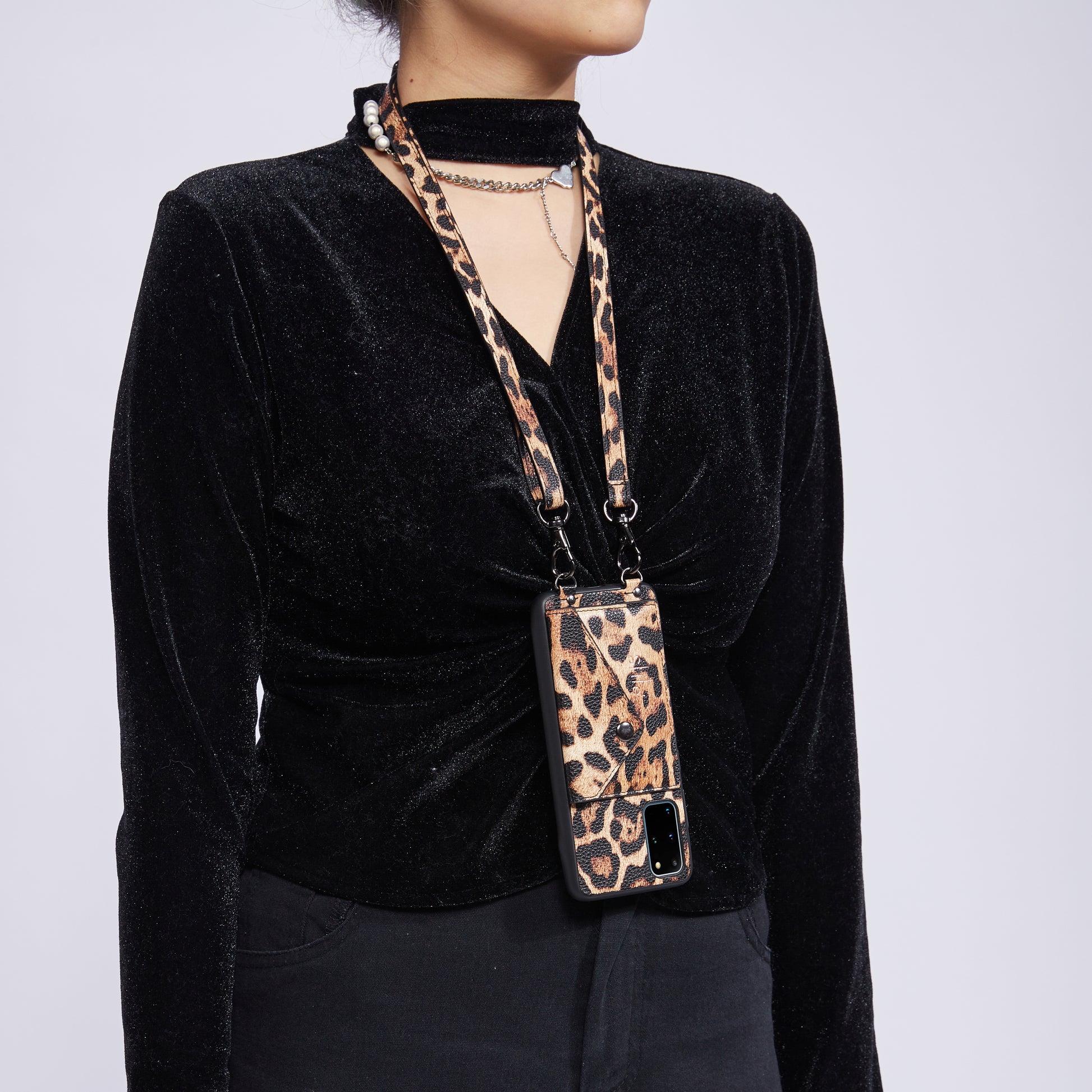 Printed Leopard pattern phone case with crossbody strap, this must have style comes complete with a side-slot snap back wallet for your cards.